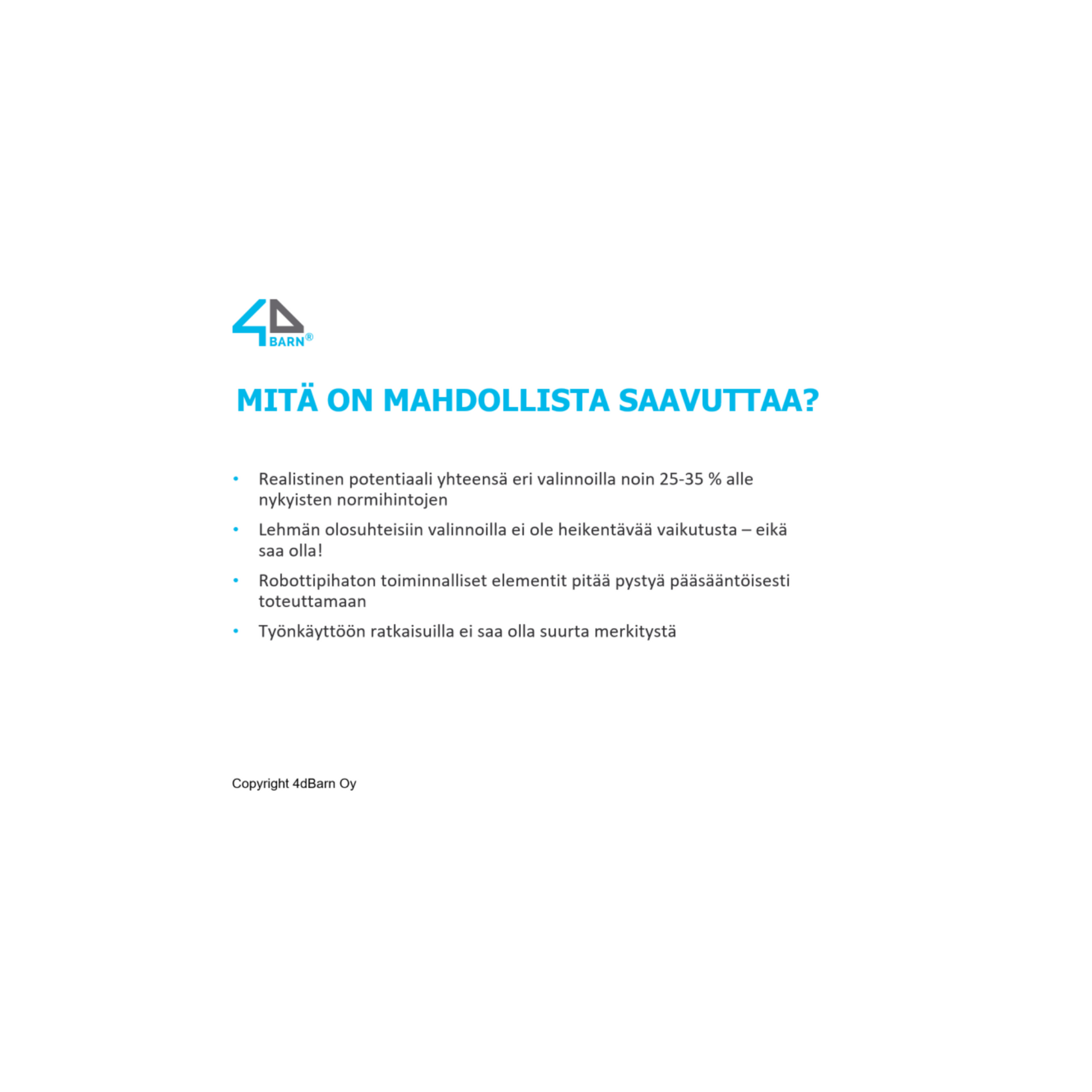 Navetan rakentaminen on kallistunut merkittävästi 2020-2022, mutta maidon hinta ei ole kehittynyt samassa suhteessa. Rahoittajat eivät helposti hyväksy kalliimman rakentamisen kustannusta. Jotta investointi voidaan toteuttaa, on löydettävä keinoja, jolla rakentamiskustannuksia pystytään alentamaan. Viimeisten 20 v aikana on ollut useita ajanjaksoja, jolloin kustannuksia on pitänyt tiristellä pienemmäksi. Nyt on jälleen käännettävä kaikki kivet ja löydettävä keinot, jolla se tehdään. Tehostetaanko pinta-alaa vai ovatko keinot rakenteisiin liittyviä asioita? Näitä esittelen tässä Edullisempi parsipaikka - webinaarissa. On hyödyllistä tietää, minkälaisista osista pihaton kustannus muodostuu ja osaat sen valita omalle tilalle sopivat keinot, joilla hintaa saadaan laskettua alemmaksi.