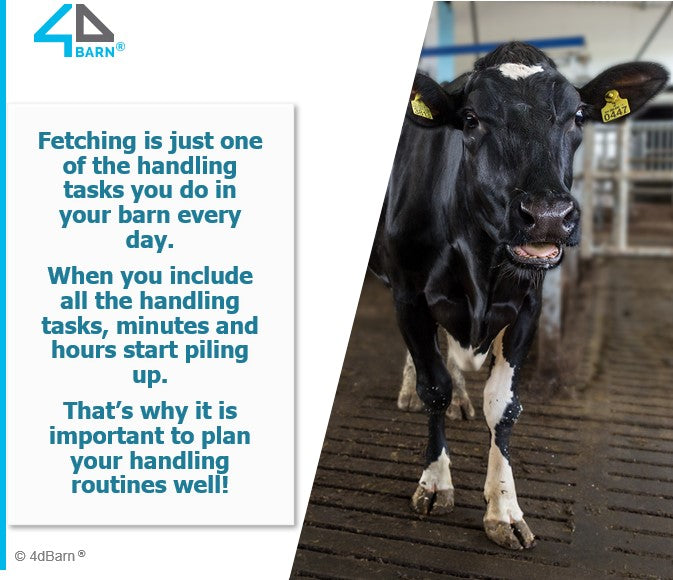 A goal in a robot barn is let the cows do their “job” on their own. Nevertheless, we need certain individual handling situations with lactation cows, which impact to labor efficiency is big!
